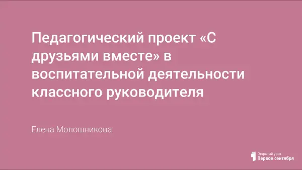 Педагогический проект классного руководителя «С друзьями вместе» предполагает реализацию специально разработанной системы игр и занятий с детьми, которые организуются по двум направлениям: что такое человек и человек среди людей. Первое направление предусматривает познание каждым самого себя, своих психологических и личностных особенностей. Второе направление направлено на организацию взаимодействия личности со своим ближайшим окружением – малой группой, в ходе которого подростки познают духовно-нравственные и психологические основы общения.