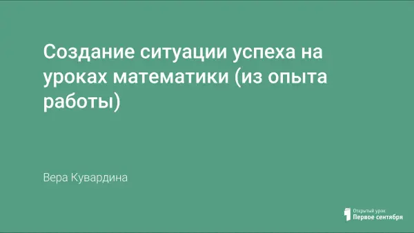 Перед учителем математики стоит задача – управлять учебной деятельностью, чтобы помочь учащимся как можно полнее проявить свои способности, развить самостоятельность, инициативу, творческий потенциал. Каждый педагог должен добиваться того, чтобы каждый его ученик нашёл себя в учёбе, стал успешным. Каждый ребенок индивидуален, у каждого есть свой собственный успех и свои достижения. Наша задача - воспитывать у ребенка потребность в достижениях, которая связана с наличием у него адекватной самооценки, упорства, воли, терпения, настойчивости и трудолюбия. Любое достижение ученика должно восприниматься как положительный и значимый результат.