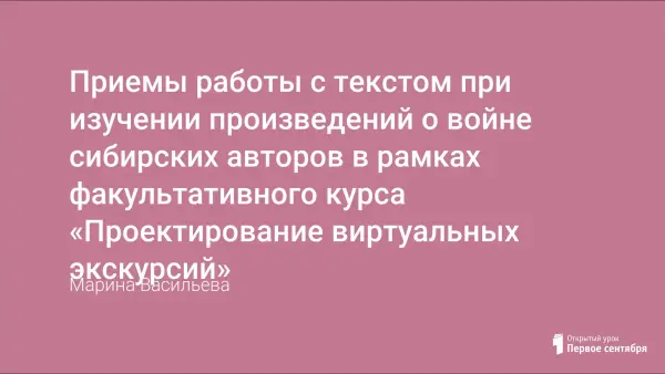 Приемы работы с текстом при изучении произведений о войне сибирских авторов в рамках факультативного курса «Проектирование виртуальных экскурсий»