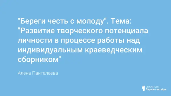 Начиная с 5-го класса, в жизнь учеников школы №6 города Карпинска входят занятия по Истокам уральской культуры. А вместе с ними и работа над собственными книгами по краеведению и творчеству. На этих занятиях обсуждаются серьёзные проблемы – о честности и совести, о милосердии и верности, о семье и родном крае. Свои рассуждения ребята записывают в свою Первую книгу по краеведению, каждый в свою личную. Сюда же они помещают свои сообщения и творческие работы, а также понравившиеся стихи и фотографии.