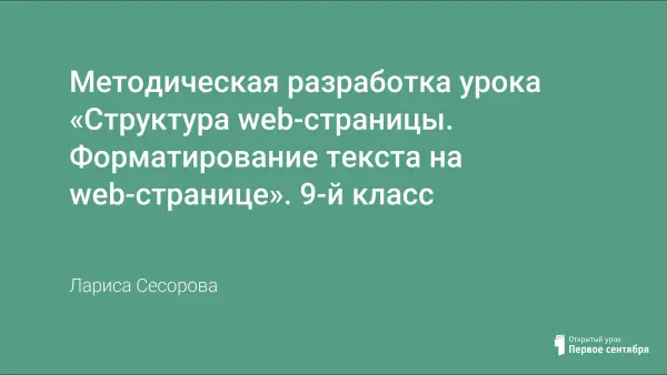 Учебные задачи урока: сформулировать основные принципы создания web-страниц; познакомить учеников с основными командами форматирования текста; продемонстрировать использование этих команд на конкретных примерах оформления web-страниц; формировать навыки и умения создания простейших web-страниц.
