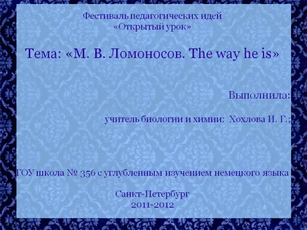 300-летию со дня рождения М.В. Ломоносова посвящается "М.В.Ломоносов. The way he is"