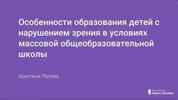 Обучение слепых и слабовидящих детей осуществляется в специализированных школах для детей с нарушениями зрения. Рассмотрим условия, которые необходимо соблюдать при проведении коррекционной работы на уроках, что позволит учителю наиболее эффективно организовать процесс обучения и воспитания, создать условия для формирования и всестороннего развития личности ребенка.