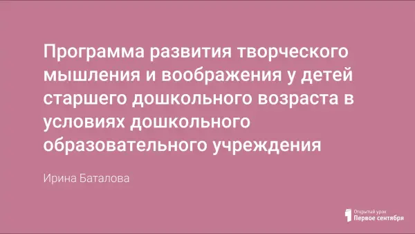 Программа рассчитана на детей 5–7 лет. Образовательная цель курса: развитие у детей познавательной активности, творческих способностей, воображения, мышления, фантазии. Ожидаемый результат: развитие творческого потенциала личности ребенка и подготовка к жизни в динамично изменяющемся мире.