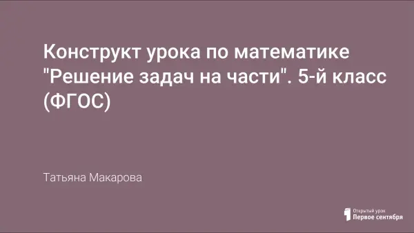 Цель урока: формирование умений решать задач на части с помощью уравнений.