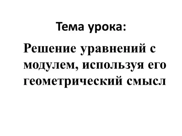 Цели урока: формирование умения применять геометрическую интерпретацию модуля при решении линейных уравнений.