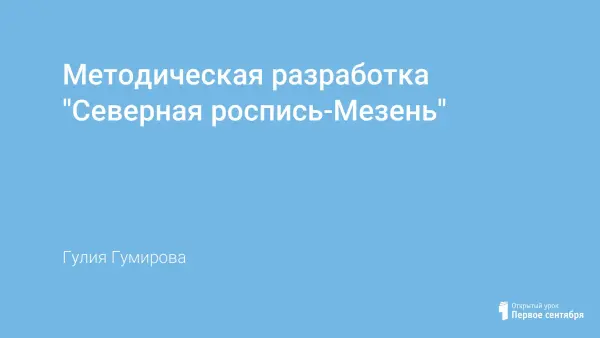 Гармоничное развитие личности ребенка не возможно без понимания и уважения культуры собственного народа, его истоков и традиций. Сохранение народной культуры сегодня: особенно актуально - это путь нравственного самосовершенствования. Народное искусство как никакой другой вид учебнотворческой работы школьников позволяет воспитывать в них определенную культуру восприятия материального мира, развивать творческие качества личности, обеспечивающие готовность наследовать духовные ценности народного искусства, быть готовыми вести диалог культур разных эпох и народов мира. Данный материал о мезенской росписи, собранный из различных источников поможет сделать эту древнейшую роспись доступной для преподавания на основе учреждений дополнительного образования.