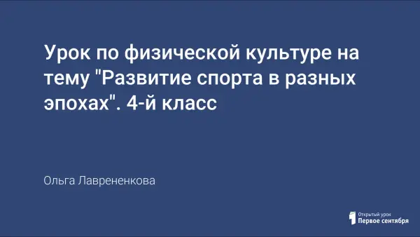 Урок-исследование по физической культуре в 4-м классе проводится в рамках междисциплинарного исследования по теме «Эпохи», в котором участвуют все учебные предметы. Деятельность на уроке физической культуры и презентация к нему способствуют большему пониманию и раскрытию центральной идеи темы «Каждая эпоха имеет своё лицо». На уроке учащиеся получают знания по истории спорта, следят за изменениями в спорте, которые происходили в разные периоды истории и заполняют общую «ленту времени».