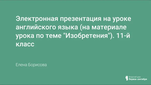 Использование электронных презентаций на уроке английского языка позволяет полнее реализовать важный дидактический принцип наглядности. Электронная презентация, являясь универсальным средством обучения, обеспечивает зрительную информацию, которая в ходе обучения может выполнять самые разные функции. В данной работе показано использование электронной презентации на уроке английского языка для 11-го класса филологического профиля.