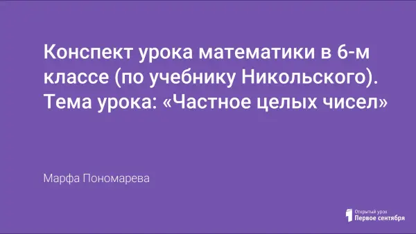 Цели урока: познакомиться с историческим материалом по теме; вывести правило деления чисел; научиться делить отрицательные числа и числа с разными знаками.