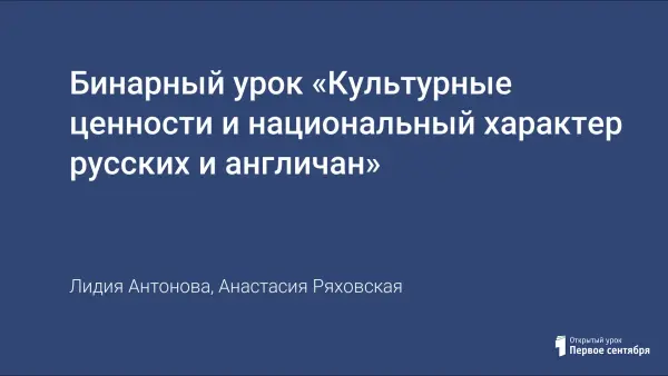 Бинарный урок проводится преподавателями психологии и английского языка. Воспитывает у студентов педагогического колледжа этнотолерантность, формирует знания об особенностях русской и английской национальных культур и чертами характера, определяющими разное поведение русских и англичан в сходных ситуациях.