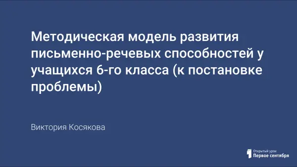 В статье представлена методическая модель развития письменно-речевых способностей учащихся 6-х классов. Модель предполагает развитие письменно-речевых способностей в направлении от копиальных к оригинальным текстам. Формирование письменно-речевых способностей учащихся 6 классов включает в себя три этапа: подражание форме исходного текста, подражание жанровой модели текста и создание собственного оригинального текста. Предлагаются упражнения, направленные на развитие письменно-речевых способностей учащихся 6 классов.