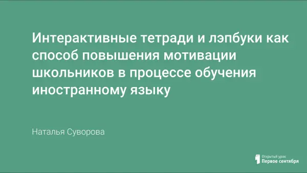 Создание и использование интерактивных тетрадей и лэпбуков это одна из эффективных форм и приемов работы на уроках английского языка, которые помогают разнообразить уроки, сделать их интересными и увлекательными. Интерактивные тетради – это просто клад и неиссякаемый источник идей для введения и отработки лексики, обучению чтения, изучению новых грамматических конструкций, для практики речи (монологической и диалогической речи), для запоминания материала (подготовка к диктанту), использовать как демонстрационный материал. Тетради можно использовать для повторения лексики и грамматики. Интерактивные тетради очень удобны для подготовки к разным тестам и контрольным. Интерактивные тетради и лэпбуки – инструмент, который позволяет задействовать, при желании, все каналы восприятия информации, а это гарантия того, что вся эта информация перейдет в долговременную память.