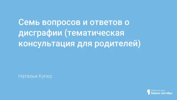 Урок в форме тематической консультации разработан с целью формирования у родителей обучающихся элементарного представления о дисграфии как специфическом нарушении письма при нормальном физическом слухе и сохранном интеллекте. Основной задачей проведения консультации является ознакомление родителей с видами дисграфических ошибок, а также с игровыми упражнениями, способствующими устранению данных ошибок на письме.