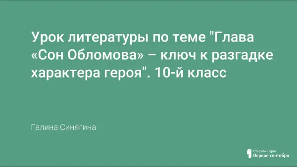 На уроке учащиеся вспоминают ранее изученные произведения А.С. Пушкина «Евгений Онегин» и «Капитанская дочка». Обсуждается роль эпизода «Сон героя» в данных произведениях. Проводится беседа о значении поры детства в жизни человека. Учащиеся знакомятся с мнениями разных критиков о главе «Сон Обломова» романа Гончарова «Обломов». Подробно разбираются эпизоды всего романа, связанных со сном.