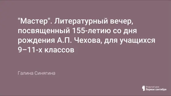 Статья содержит сведения о семье А.П. Чехова, о детстве, о студенческих годах писателя, о первых литературных опытах, о драматургии. Также в ходе вечера используются небольшие инсценировки произведений Чехова.