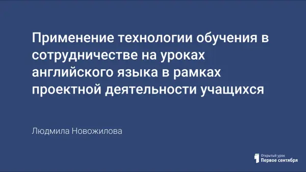 Научить школьников общаться на иностранном языке в условиях учебного процесса – задача достаточно сложная. Ведь естественную речь стимулирует не необходимость, а потребность в реальном общении. Недостаток активной устной практики на уроке английского языка, стремление повысить эффективность обучения, побудило меня использовать технологию обучения в сотрудничестве на своих занятиях. Целью педагогической деятельности является обеспечение положительной динамики формирования и развития навыков самостоятельной деятельности обучающихся, в частности мотивации общения на английском языке посредством использования технологии сотрудничества.