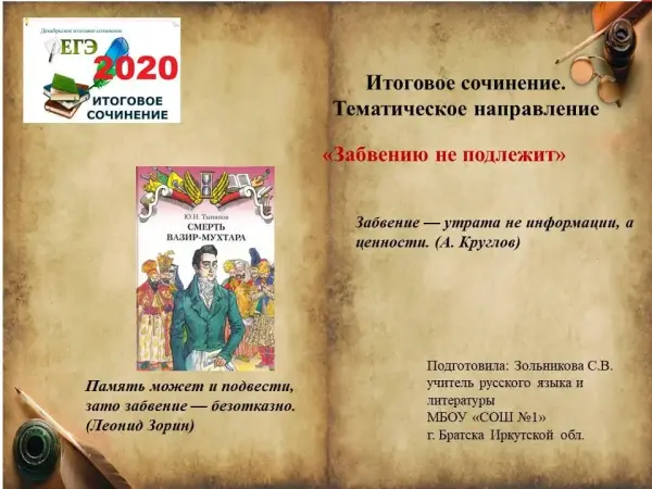 Итоговое сочинение. Тематическое направление "Забвению не подлежит"