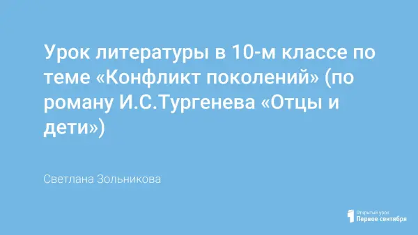 Цель урока: создать условия для эмоционального восприятия романа И.С.Тургенева «Отцы и дети», дать возможность глубже почувствовать собственные мысли и чувства; выяснить, что может привести к конфликту между людьми, выделив его сильные и слабые стороны; научиться выходить из конфликтной ситуации.