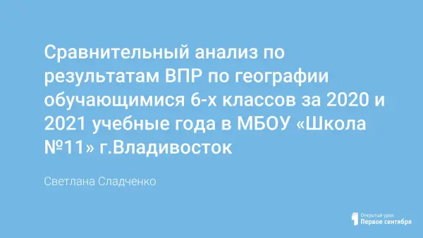 Сравнительный анализ по результатам ВПР по географии обучающимися 6-х классов за 2020 и 2021 учебные года в МБОУ «Школа №11» г.Владивосток