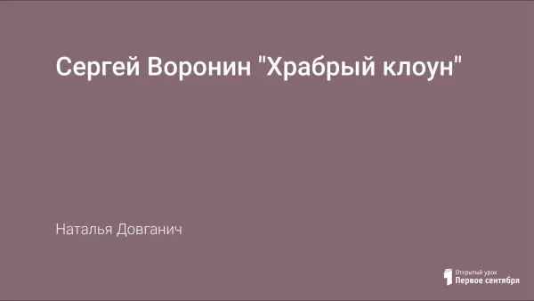 Цели урока: познакомить с писательской деятельностью Сергея Воронина, с его литературной сказкой “Храбрый клоун”; формировать правильную читательскую деятельность, через обдумывание предстоящего чтения, прогнозирование, осмысление читаемого в процессе и по окончании прочтения.