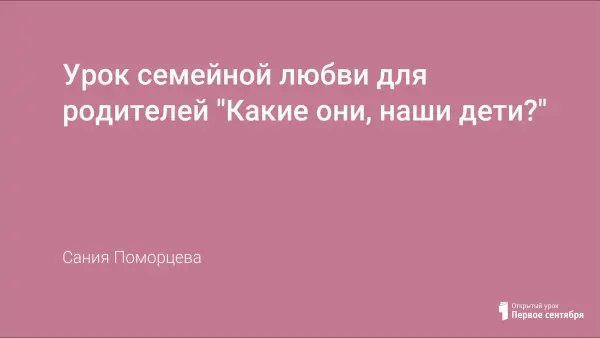 Урок семейной любви для родителей "Какие они, наши дети?" может быть предложен для любой родительской аудитории. Цель урока: задуматься над тем, какие они - мальчишки и девчонки, каким человеком растет их сын или дочь. Предлагается нарисовать словесный портрет детей, что радует или огорчает в детях, даются советы. Рассматриваются разные точки зрения по одному вопросу: мнения детей, родителей, учителей, что помогает к концу урока определить, достигнута ли цель урока.