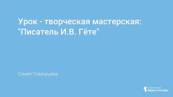 Цели урока: развитие познавательного интереса к литературе страны изучаемого языка; приобщение учащихся к творчеству Иоганна Вольфганга Гёте. УМК И.Л. Бим по немецкому языку не представляет в полном объеме материал на тему «Немецкие классики». Представленный урок можно провести как в урочной, так и во внеурочной деятельности. Материал урока развивает эстетические взгляды и чувства учащихся, обучает выразительному чтению лирических произведений, художественному переводу на русский язык.