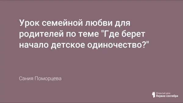 Цель урока: дать возможность родителям задуматься над проблемой детского одиночества, ее влиянием на поведение и характер ребенка; показать родителям значимость общения с детьми для становления и развития ребенка.