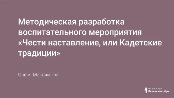 Цель мероприятия: способствовать воспитанию чувства патриотизма с опорой на историю прошлого и общечеловеческие ценности. Задачи: способствовать созданию условий для осознания понятий «кадетское единство», будущие защитники Отечества; расширение знаний воспитанников об истории кадетского движения; способствовать сплочению классного коллектива через изучение различных кадетских традиций; составить кластер «Кадетские традиции».