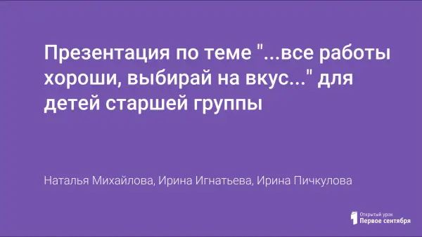 Презентация по теме "...все работы хороши, выбирай на вкус..." для детей старшей группы