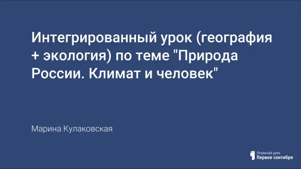 Интегрированный урок географии и экологии по теме «Природа России. Климат и человек» необходим для того, чтобы показать влияние климата на здоровье человека и зависимость происхождения болезней от погодных условий.