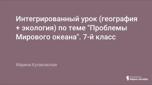 Обобщающий урок с элементами конференции, опережающим заданием, практической частью. Опережающее задание готовит группа экспертов (учащиеся этого же класса) по проблемам Мирового океана. Практическая часть заключается в составлении схемы «Ресурсы Мирового океана». Составлении схемы в процессе пресс-конференции «Основные загрязнения водных систем и влияние на здоровье человека». Учащиеся-слушатели заранее готовят вопросы для группы экспертов.