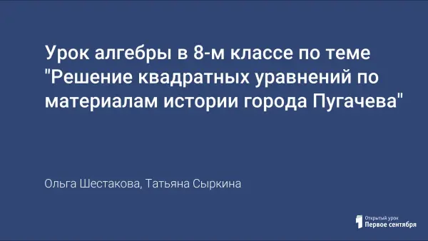 Урок алгебры в 8-м классе по теме "Решение квадратных уравнений по материалам истории города Пугачева"
