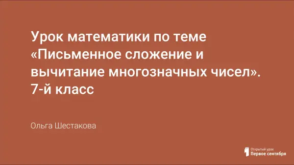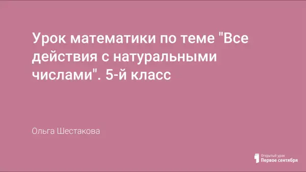 Урок проводится после изучения темы «Натуральные числа», обобщает и систематизирует знания, умения, навыки учащихся при выполнении арифметических действий над натуральными числами, учит бегло считать, аккуратно располагать записи в тетради и на доске, развивает логическое мышление учащихся.
