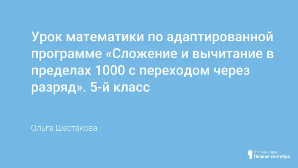 Предлагается урок математики по адаптированной программе, который можно провести после изучения темы «Письменное сложение и вычитание многозначных чисел», ставятся следующие цели: актуализировать представления учащихся о нумерации многозначных чисел; закрепить умение выполнять письменное сложение и вычитание многозначных чисел.