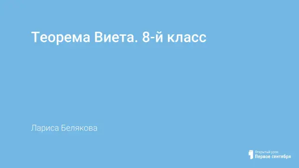 Представлена презентация к уроку по теме "Теорема Виета" в 8-м классе.
