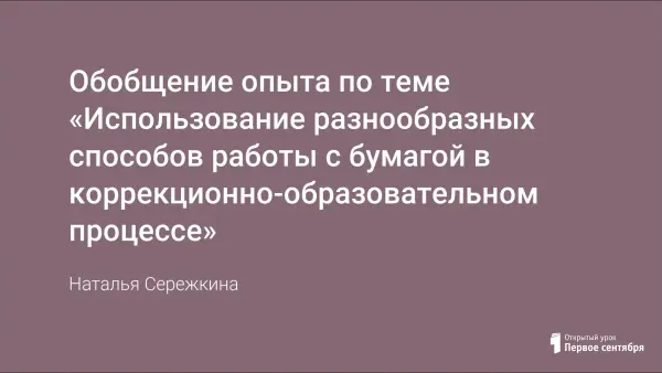 В данной работе представлен опыт работы с детьми 5–6 лет с общим недоразвитием речи по развитию ручной умелости, используя разнообразные способы работы с бумагой и упражнения на развитие мелкой моторики рук как в специально организованной деятельности с педагогом, так в самостоятельной деятельности детей.