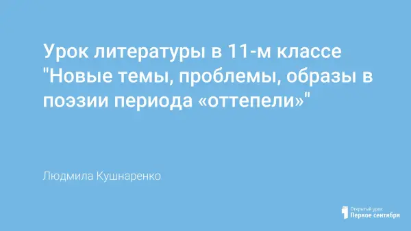 Предлагаемый урок имеет определённые цели - привлечь внимание учащихся к проблемам литературы 60-х годов, показать роль поэзии периода "оттепели" в общественной жизни страны. Урок должен содействовать творческому развитию личности, аргументированию своей точки зрения.