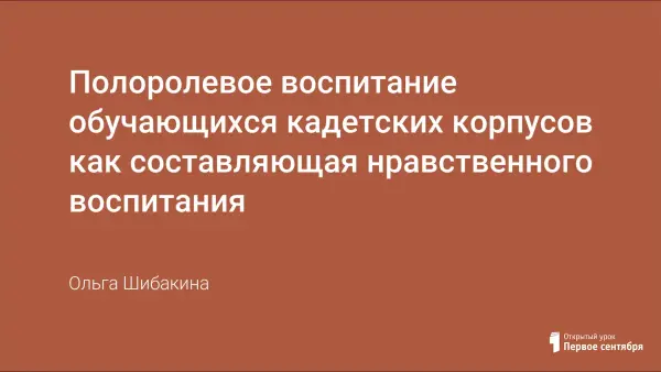 Особую роль целенаправленное полоролевое воспитание и просвещение, а также формирование чувств ответственности за себя и других играют в работе с обучающимися кадетских корпусов и суворовских училищ. Их актуальность обусловлена снижением возраста поступающих в кадетские корпуса и суворовские училища. С 2016 года набор на обучение в Омском кадетском военном корпусе приходится на возраст 12 лет. В данном возрасте, в силу особенностей семейного воспитания, опыта общения в младших классах не у всех обучающихся сформированы зависящие от половой принадлежности схемы поведения, установки и интересы, дифференциация деятельности, статусов, прав и обязанностей индивидов.
