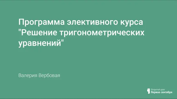 Цель курса: расширить представление учащихся о видах тригонометрических уравнений и методах их решения, выработать умение по применению методов решения, актуализировать базовые знания, формировать умения анализировать ситуации, выбирать метод решения.