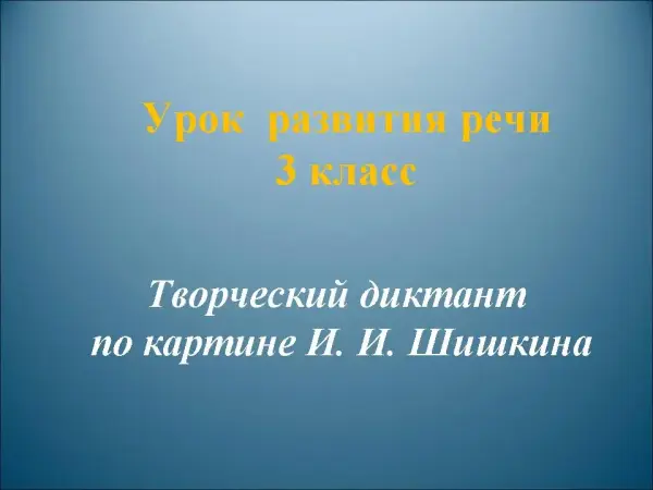 На уроке развития речи ученики описывают картину И.И. Шишкина «Утро в сосновом лесу». Презентация сопровождается музыкой, что делает восприятие картины более эмоциональным. Итог работы – творческий диктант.