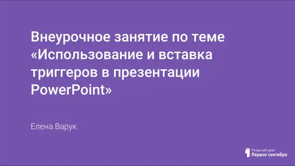 Статья содержит конспект внеурочного занятия по информатике для обучающихся начальной школы и обучающихся 5–6-х классов. Оно является одним из последних занятий по теме «Работа с презентациями». К этому занятию обучающиеся должны уметь создавать презентацию, вставлять в неё текст, рисунки, анимацию, меню. Во время занятия обучающиеся узнают, что такое триггер, как его вставить в презентацию, выполнят практическую работу. К статье приложена презентация с кроссвордом и наглядными объяснениями.