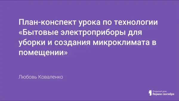 Цель урока: ознакомление с бытовыми электроприборами для уборки и создания микроклимата в помещении; формирование исследовательских навыков.