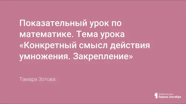 Цель урока: создать условия для продолжения работы над раскрытием смысла действия умножения; совершенствовать вычислительные навыки и умение решать задачи; развивать внимание и логическое мышление.