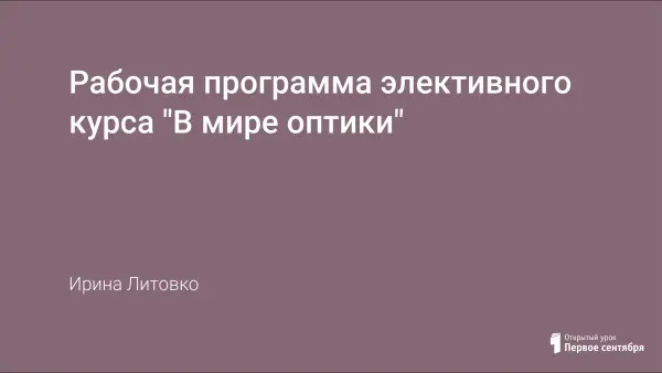 Рабочая программа элективного курса «В мире оптики» ориентирована на расширенное изучение вопросов раздела «Световые явления». Программа разработана для обучающихся 6-го класса, изучающих предмет «Физика и химия» в условиях введения ФГОС ООО. Практические работы, семинары, работа над проектом способствуют развитию творческого мышления и исследовательской деятельности обучающихся в процессе самостоятельного приобретения новых знаний.