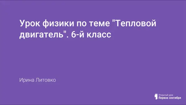 В ходе урока учащиеся знакомятся с устройством и принципом работы, историей создания и применением тепловых двигателей, через диалог «учитель–класс» и «ученик–ученик», выдвижение предположений учащимися и доказательство, объяснение наблюдаемых явлений и опытов, работу с учебником и справочными материалами. Конспект урока разработан для учащихся 6-го класса, изучающих предмет «Физика и химия» в условиях реализации ФГОС ООО.