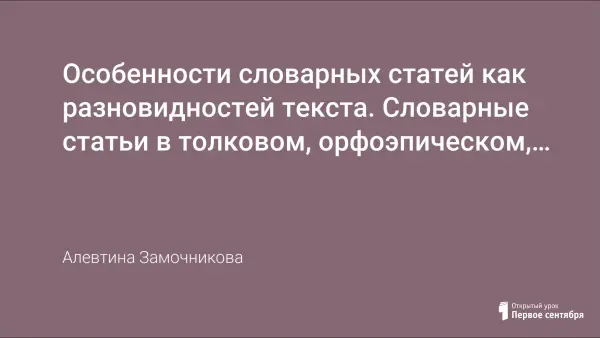 Цели урока: учащиеся научатся подбирать из разных источников информацию о слове и его окружении, составлять словарную статью о слове, участвовать в ее презентации.