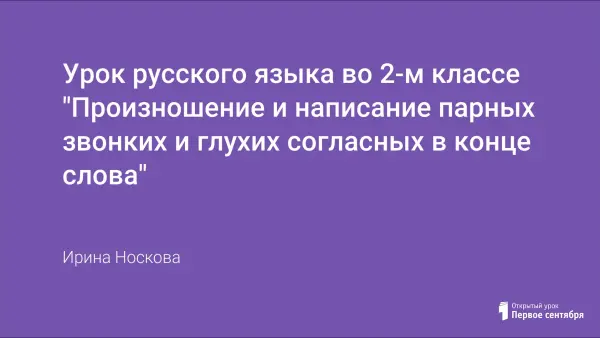 Комбинированный урок русского языка во 2-м классе с использованием частично-поискового, коррекционно-развивающего метода обучения с применением информационно-коммуникационных и здоровьесберегающих технологий. Цели урока: уточнить и конкретизировать знания учащихся о парных и непарных звонких и глухих согласных, учить анализировать звуковой состав слова, довести до четкого понимания, что парный согласный звук на конце слова может заменяться другим согласным, поэтому его нужно проверять.