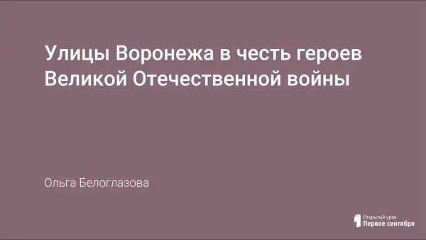 Цель работы: узнать, почему улицы носят фамилии людей, познакомиться с героическими подвигами народа в годы Великой Отечественной войны, изучить биографию героев, воспитывать патриотизм.