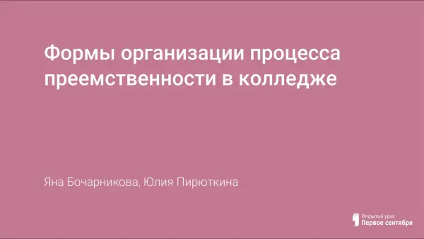 В области воспитания процесс преемственности предполагает такую организацию воспитательного процесса, при которой то или иное мероприятие является естественным и логическим продолжением проводившейся ранее работы, закрепляет и развивает достигнутое, поднимает воспитание и развитие не более высокий уровень. Нами была выявлена ещё одна грань процесса преемственности: несмотря на то, что мероприятия, предполагающие данный процесс, планируются и управляются изначально педагогом, их цели обязательно должны быть приняты молодёжью, а формы и содержание мероприятий должны быть действительно необходимы обеим сторонам.